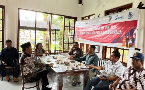 Yayasan Eran Sangbure Mayang (YESMa) Tana Toraja sebagai mitra Yayasan BaKTI dalam Program Kemitraan Australia-Indonesia Menuju Masyarakat Inklusif (INKLUSI), memfasilitasi Penyusunan Program INKLUSI dengan DPRD (Dewan Perwakilan Rakyat Daerah) Kabupaten Tana Toraja. Desain Program inklusi antara YESMa dan DPRD Tana Toraja dilaksanakan pada 27 Juli 2022 bertempat di Cafe Royal Makale, yang dihadiri oleh Ketua DPRD Tana Toraja, Ketua Komisi 1, Ketua Komisi 2, Ketua Bapemperda (Badan pembentuk peraturan daerah) dan beberapa anggota DPRD, serta staf sekretariat DPRD Tana Toraja.