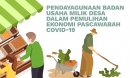 Perekonomian desa memiliki kontribusi besar bagi perekonomian nasional. Saat ini dampak Covid-19 lebih dirasakan oleh wilayah perkotaan. Namun, karena mobilitas pekerja musiman asal desa yang bekerja di kota dan kembali ke desa cukup tinggi, masalah perekonomian di perdesaan perlu segera diantisipasi. Di desa terdapat banyak usaha mikro dan kecil yang dapat diberdayakan untuk mendukung pemulihan ekonomi nasional. Saat ini usaha mikro dan kecil menghadapi tantangan cukup besar dalam aspek permodalan untuk mendukung pengembangan usaha. Dengan adanya UU Desa, peran Desa menjadi kuat dan kapasitas pembiayaan pembangunan desa menjadi melonjak signifikan. Dana Desa menjadi salah satu sumber pembiayaan yang akan mendorong potensi ekonomi lokal di desa melalui pendirian dan penyertaan modal kepada Badan Usaha Milik Desa (BUMDes). Selanjutnya, BUMDes ini dapat diberdayakan untuk mendukung pengembangan usaha mikro dan kecil, terutama untuk mengatasi masalah permodalan dan pemasaran yang dihadapi oleh usaha mikro dan kecil. Adanya pandemi Covid-19 memberikan dampak yang cukup berat terhadap laju dan dinamika perekonomian yang ada, dan pengaruhnya juga dirasakan hingga ke perdesaan. Peran BUMDes dapat digunakan pemerintah untuk mengoptimalkan dan menjaga keberlanjutan serta menguatkan usaha mikro dan kecil. Dalam jangka pendek, pemerintah dapat memprioritaskan pembentukan BUMDes yang bergerak dalam bisnis keuangan (financial business) yang memenuhi kebutuhan usaha skala mikro yang dijalankan oleh pelaku usaha ekonomi desa. Pemerintah perlu membentuk “steering committee” yang melibatkan kementerian dan lembaga terkait untuk merumuskan berbagai kebutuhan guna memulihkan ekonomi desa.